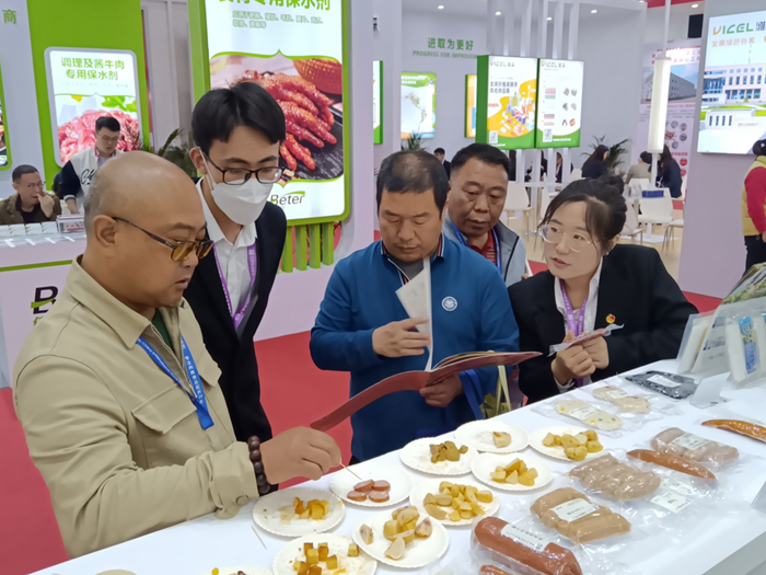 同時(shí),研發(fā)與營銷工作人員熱情接待前來品嘗交流的行業(yè)客戶,詳細(xì)介紹海藻膳纖功能配料其應(yīng)用原理及賦能肉制品的各種可能。