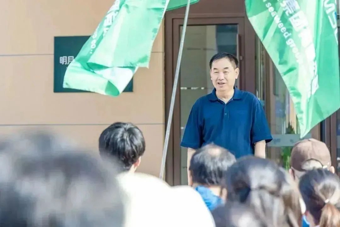 在明月海藻世界海洋生活家酒店門前,來自集團及各產業板塊朝氣蓬勃的明月人,帶著昂揚的斗志整裝待發,燦爛的笑容和飄揚旗幟,成為一道亮麗搶眼的風景線。