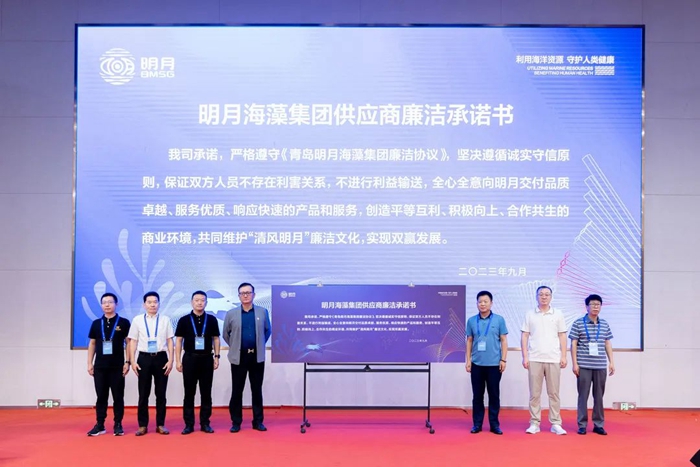 隨后,在集團副總裁李振廣詳盡地為大家解讀供應商管理和質(zhì)量管理體系的相關(guān)內(nèi)容后,7家戰(zhàn)略供應商代表上臺簽訂《青島明月海藻集團供應商廉潔承諾書》。