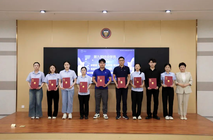 集團(tuán)總裁助理、人力資源部總監(jiān)尹麗莉為學(xué)員頒發(fā)第九期學(xué)員結(jié)業(yè)證書。