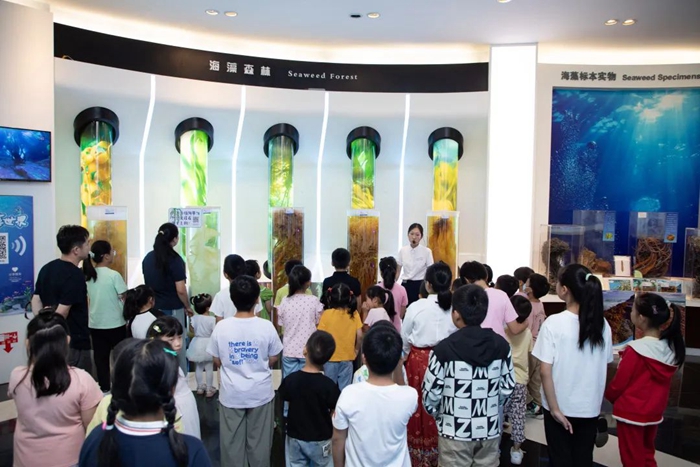 與此同時(shí),孩子們?cè)谥v解員的陪伴下,參觀了中國(guó)海藻科技館與海藻部落,通過(guò)互動(dòng)體驗(yàn)、科普講解等形式,近距離感受了海藻的神奇魅力與廣泛應(yīng)用。那些色彩斑斕、形態(tài)各異的海藻標(biāo)本,以及通過(guò)高科技手段展現(xiàn)的海藻生長(zhǎng)過(guò)程,讓孩子們瞪大了眼睛,滿是好奇與驚嘆,對(duì)海洋的奧秘充滿了無(wú)限向往。