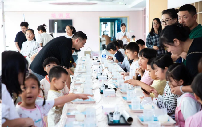 隨后,家長(zhǎng)與孩子們?cè)诤T褰】掉彻餐谱髁撕T迨止ぴ怼_@一過(guò)程不僅讓孩子們體驗(yàn)到了動(dòng)手創(chuàng)造的樂(lè)趣,更讓他們深刻理解了健康、環(huán)保的生活理念,進(jìn)一步加深了家庭成員之間的情感紐帶。許多家長(zhǎng)表示:“這是第一次了解到海藻科學(xué),感受到科技的魅力與教育的意義。感謝工會(huì)及明月為我們提供了這樣一個(gè)難得的機(jī)會(huì),也讓我們對(duì)海洋強(qiáng)國(guó)更有信心、更有底氣。”
