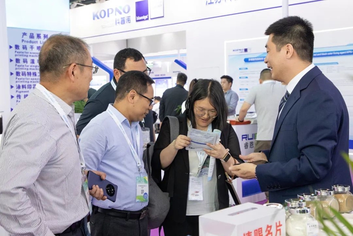 明月此次展出了四大系列印花糊料產品:海藻酸鈉活性印花糊料、分散印花糊料、仿蠟印花糊料,以及全新升級的數碼印花糊料系列,涵蓋了從傳統印花到前沿數碼技術的多種應用場景。值得一提的是,明月全系列產品已通過OEKO-TEX標準檢測,綠色環保、安全無憂。其中,明月數碼印花糊料系列新產品憑借高穩定性、優異印花表現及環保性能成為現場焦點,吸引眾多客戶深入咨詢,展現了數碼印花作為行業發展新趨勢的強勁勢能。