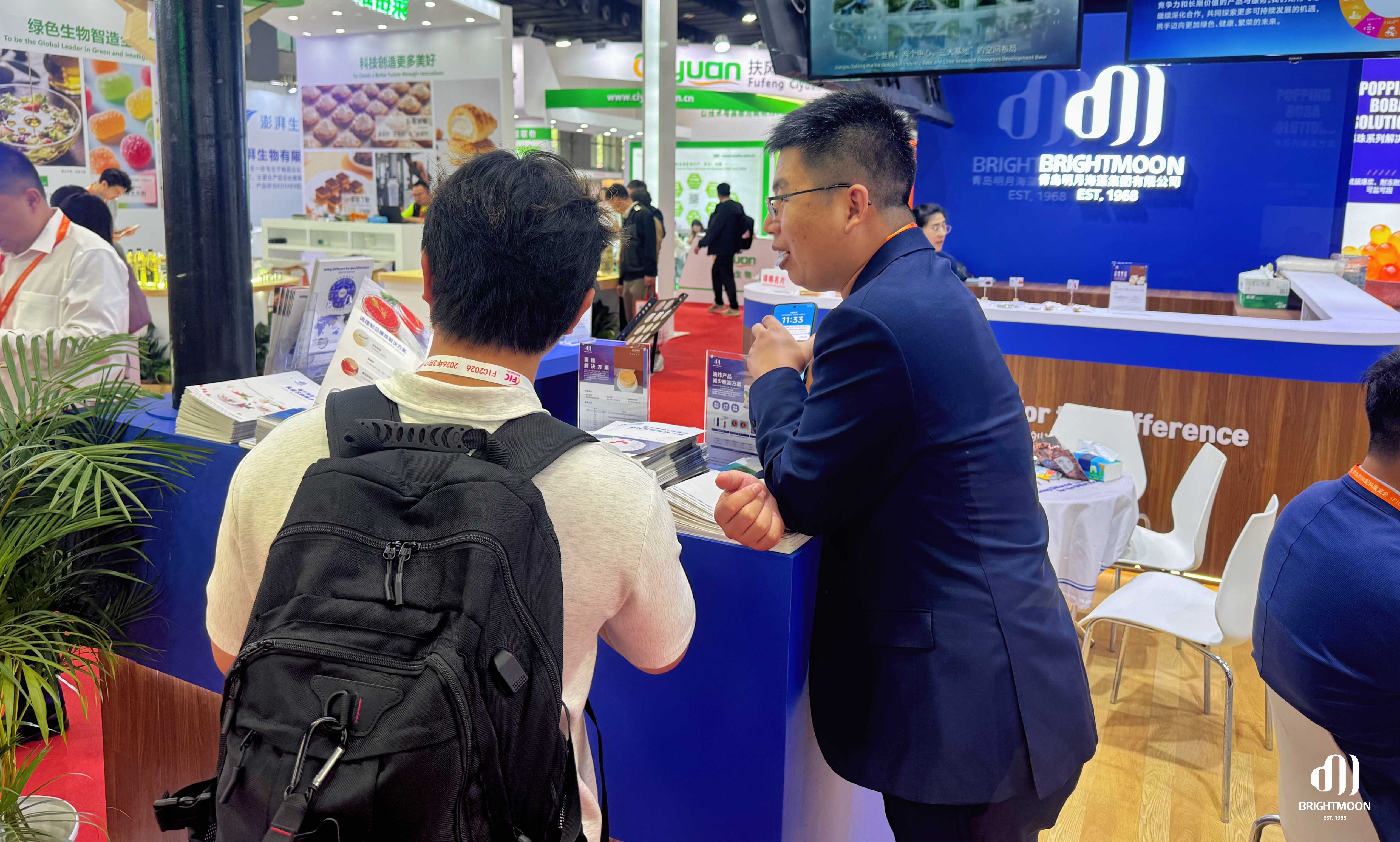 展會期間,明月展位始終熱度不減。專業(yè)團(tuán)隊(duì)以產(chǎn)品展示、技術(shù)交流和場景化示范,向現(xiàn)場觀眾集中呈現(xiàn)“海藻功能原料×食品創(chuàng)新”的前沿趨勢,吸引了大量行業(yè)伙伴駐足探討,共同尋找下一代食品創(chuàng)新方向。
