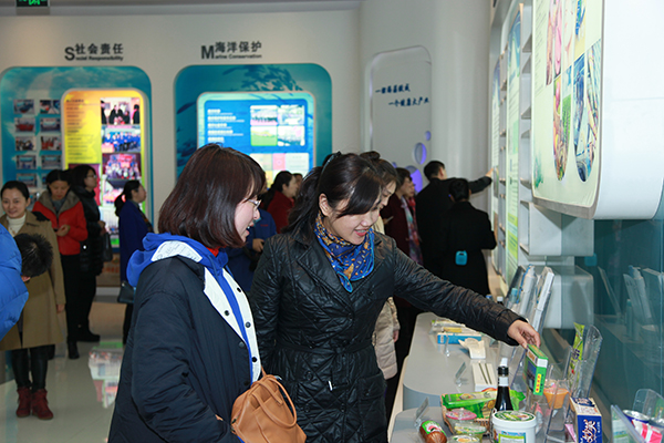 在青島明月海藻生物科技館內,通過系統了解海藻生物產業、參觀海藻活性物質國家重點實驗室,大家仿佛進入了神奇的海藻世界。從化妝品、食品到保健品,一片面膜,一件海帶食品,甚至藥用的創可貼,都是用海藻加工而成的的天然、綠色、環保型高科技產品,令大家贊嘆不已。