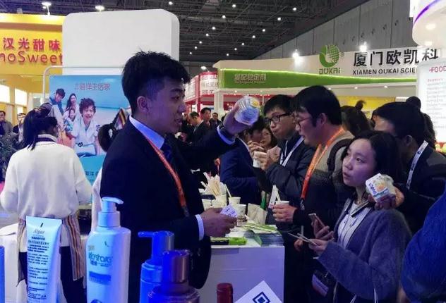 本次展會明月集團進行了新的品牌展示活動,而且進行了健康產品的體驗活動,包括海藻酸鈉制作的膳食纖維代餐凍和含有海帶粉的褐藻面。同時舉辦了主題為海藻活性物質在功能食品中的應用研究進展的新產品新技術發布會,介紹了微膠囊新技術、海藻酸鈣新配料和藻酸鹽的活性及應用。