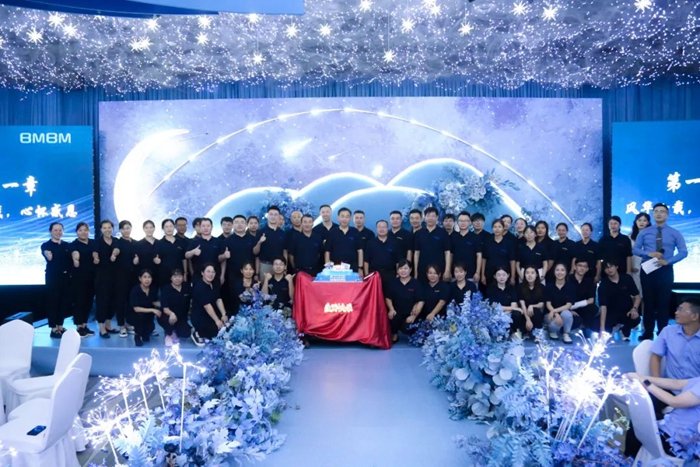 講話結束后,集團領導與明月醫材全體員工合影留念并切蛋糕、觀看文藝演出。
