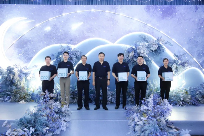 慶典上,明月海藻集團總裁劉兆志為明月醫材十年老員工頒獎。董事局主席張國防為明月醫材“雙十周年”(進集團10年以上,同時進生物醫用材料也10年以上)老員工頒獎并致辭。